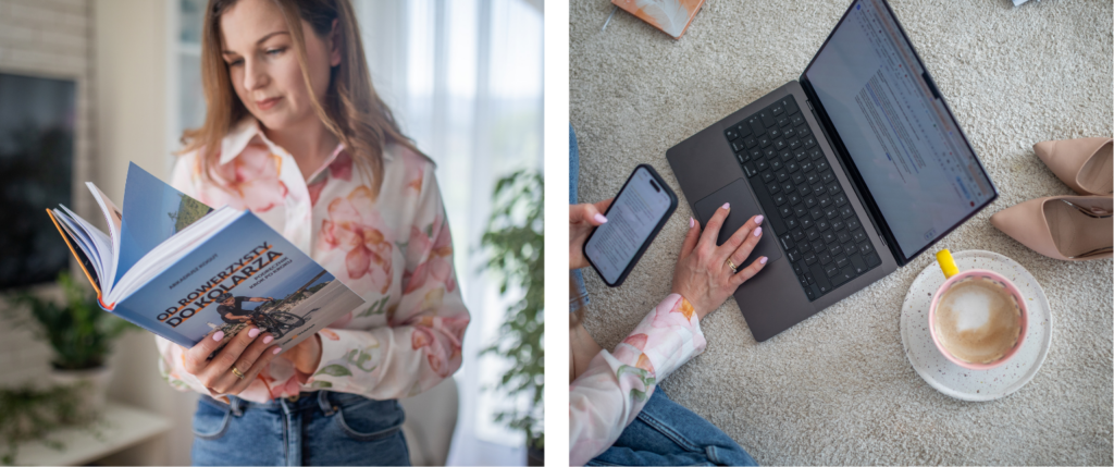 W 2023 roku pracowałam nad redakcją książki “Od rowerzysty do kolarza” Arka Koguta. Miałam też przyjemność wcielić się w rolę lektorki audiobooka i autorki. Napisałam rozdział “O kobiecej pasji do dwóch kółek” skierowany do kobiet. Wzbogaciło mnie to o kolejne umiejętności. Zobacz książkę tutaj.
